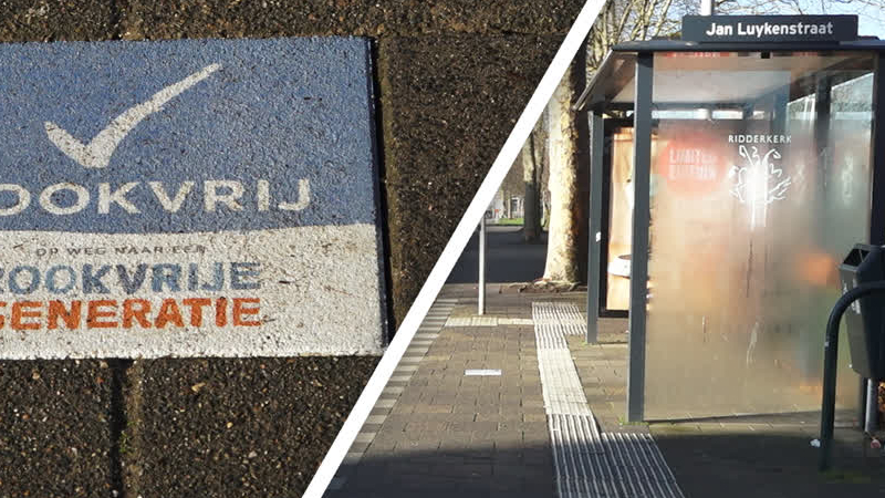 De gemeente Ridderkerk en negen andere gemeenten in Nederland roepen reizigers op om niet te roken o...
