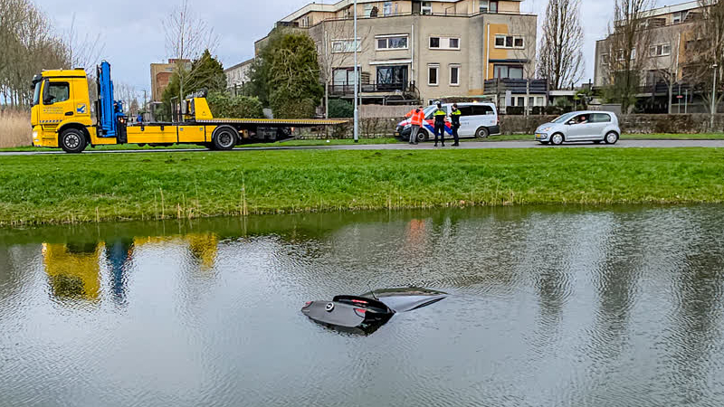 Een auto is zaterdagochtend te water geraakt langs de Groenezoom in Dordrecht. De bestuurder van de ...
