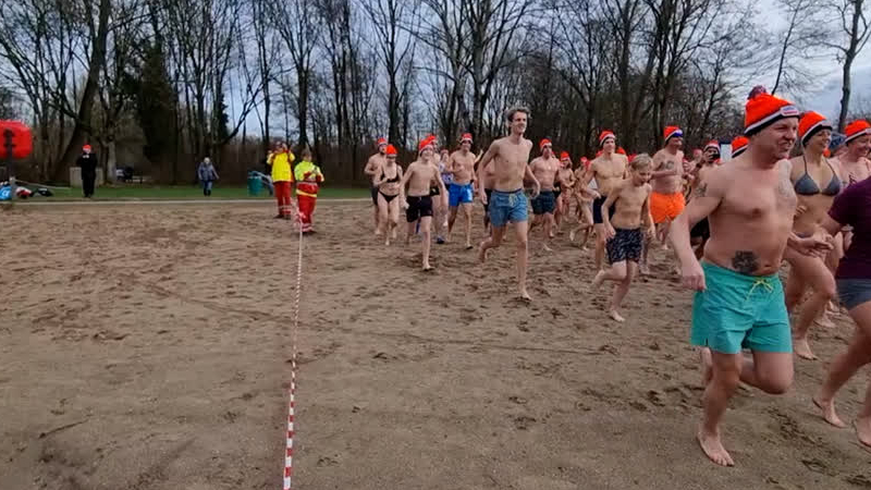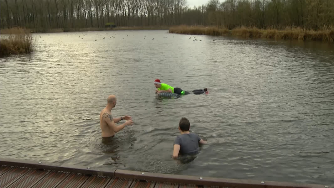 Een nieuwjaarsduik in december, is dat niet wat vroeg? Deelnemers van het project World Servants gin...