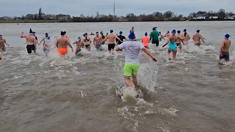 Zo’n 20 Dordtenaren begonnen 2024 fris en fruitig met de Nieuwjaarsduik. Dit jaar niet in de Merwela...