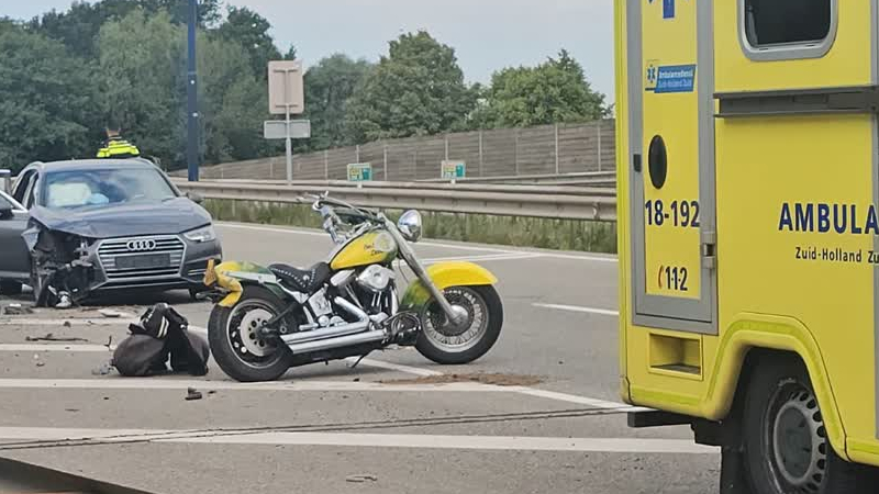 Een auto en motor zijn donderdagochtend met elkaar in botsing gekomen bij de Kiltunnel richting Dord...
