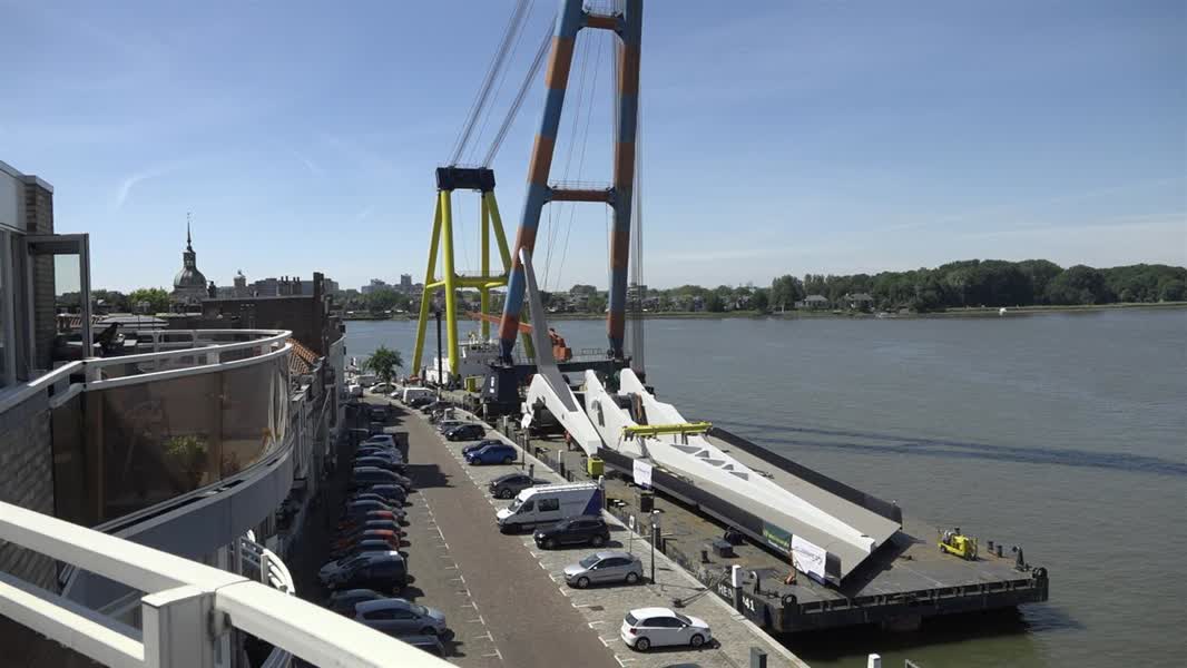 Prins Clausbrug wordt dinsdag op zijn plek gehesen; bokkraan torent boven Dordt uit