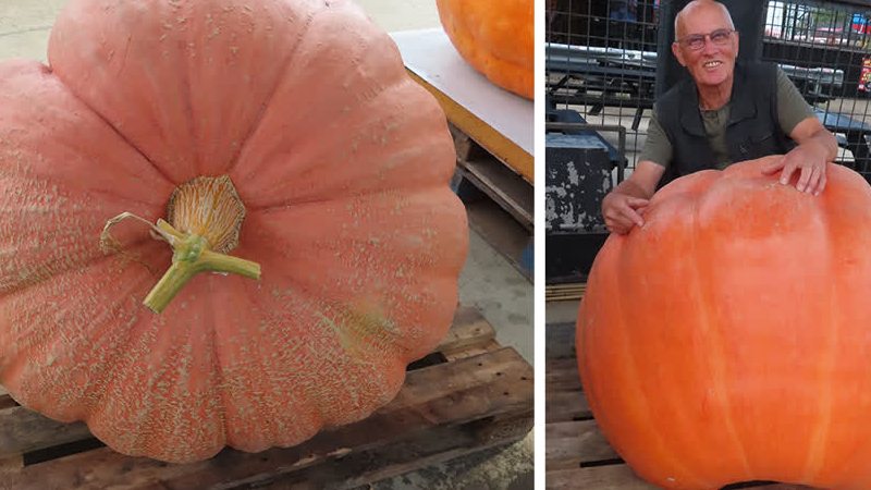 Wie heeft de allerzwaarste pompoen? De Alblasserdamse Jan Scheffe (76) deed zaterdag mee aan Het Ned...