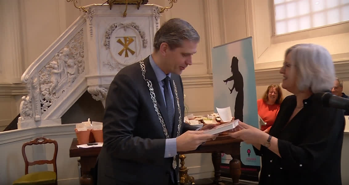 Sommige vrouwen komen in het boek kort, andere uitgebreid aanbod. Burgemeester Wouter Kolff nam het eerste exemplaar van het boek Dochters van Dordrecht in ontvangst. En sprak gelijk zijn wens uit voor de plaats van de vrouw in de toekomst van de stad.