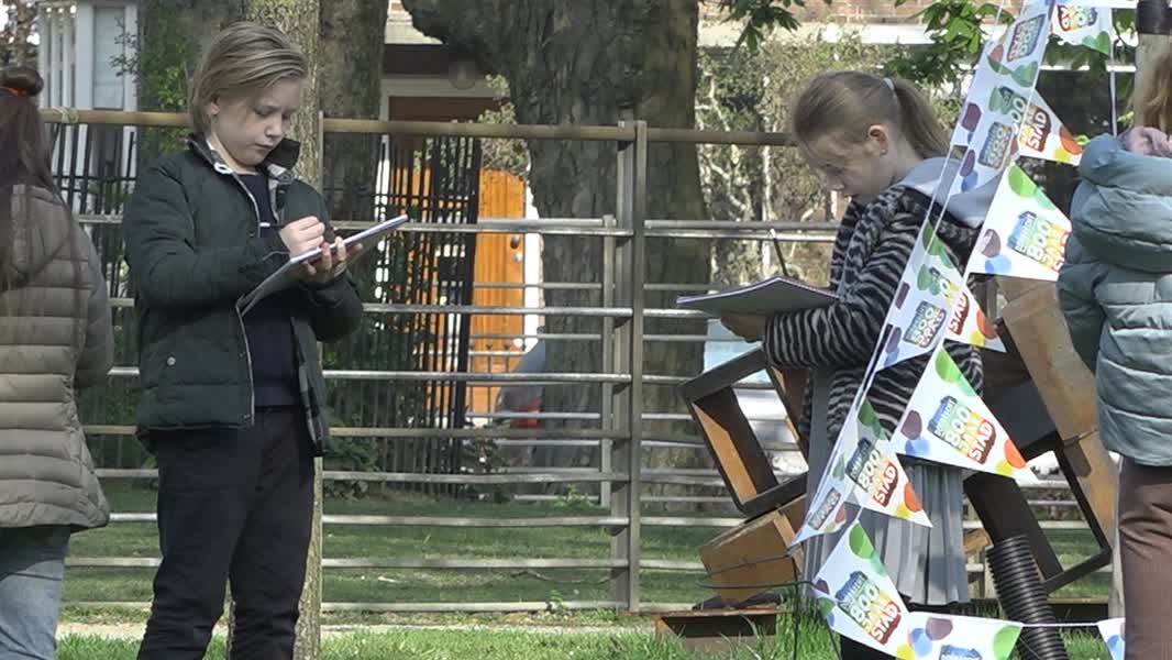 Verschillende klassen van School Mühring en School Vest waren dinsdagochtend te vinden in Park Merwestein. Toppie Dordrecht organiseerde namelijk buitenlessen en geïnspireerd door de pas geopende beeldenroute, moesten de kinderen tekenen, rappen en dansen.
