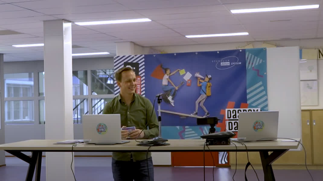 Jesse Verbraak, teamleider van klas 1, zegt veel moeite in de online open dag te hebben gestopt. Zo hebben ze nieuwe camera’s aangeschaft om extra goed over te komen op beeld. “Kinderen letten vooral op de kwaliteit van het beeld en geluid van de livestream”, weet de teamleider. Zo hebben ze op het Stedelijk Dalton Lyceum extra veel filmpjes gemaakt, voor en door kinderen. “Zo kunnen kinderen toch zien hoe de sfeer in ons gebouw is.”