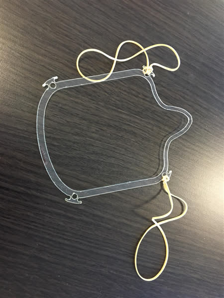 In een fabriek in de Krabbepolder rollen tientallen plastic mallen van de band. Een paar elastiekjes eraan en daarmee moet het de oplossing zijn voor het tekort aan beschermingsmateriaal tijdens deze coronacrisis.