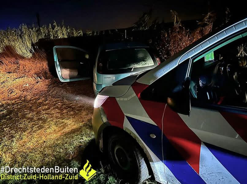 De achtervolging eindigde in een sloot ©Politie Drechtsteden Buiten/Instagram