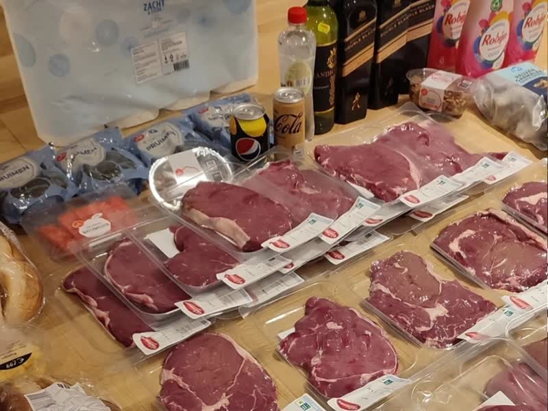 In Sliedrecht hadden twee winkeldieven het gemunt op flinke stukken vlees. Op een foto van de politie is te zien dat de verdachten voor honderden euro’s aan gestolen boodschappen mee wilden nemen. Toen hun auto werd gecontroleerd na een melding van winkeldiefstal, werden zij betrapt. Het duo is aangehouden.