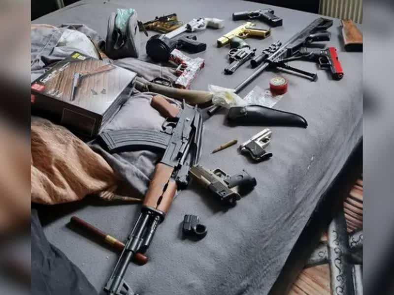 Bij zijn arrestatie werd inderdaad een grote hoeveelheid wapens gevonden. Dat waren echte wapens, onklaar gemaakte wapens en een aantal balletjespistolen.