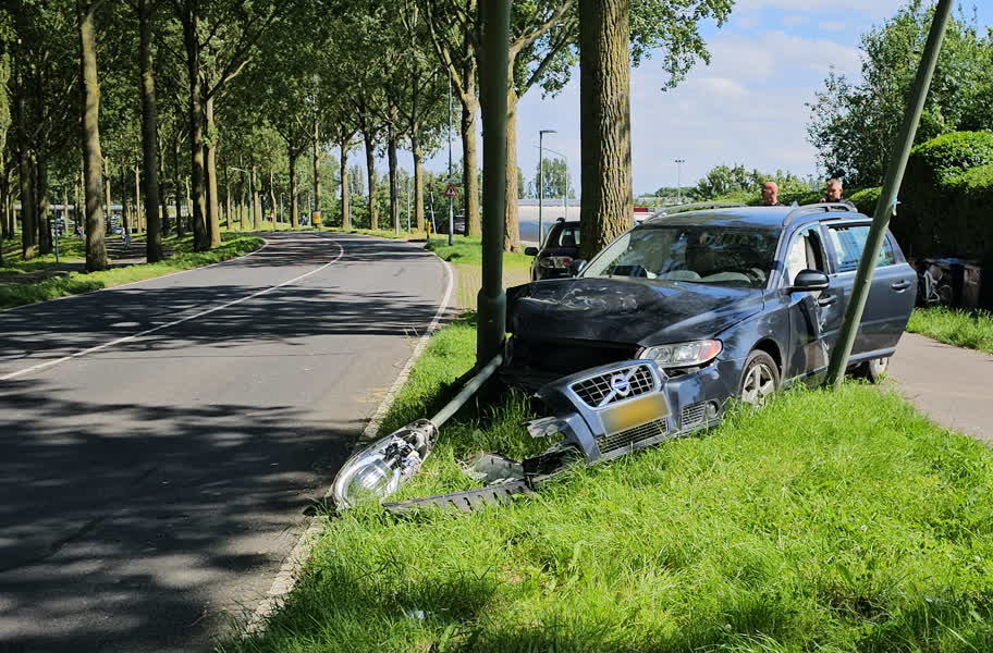 Aan de Noordendijk in Dordrecht is een 85-jarige man tegen een lantaarnpaal gereden. De politie meldt dat de man tijdens het autorijden was weggevallen.