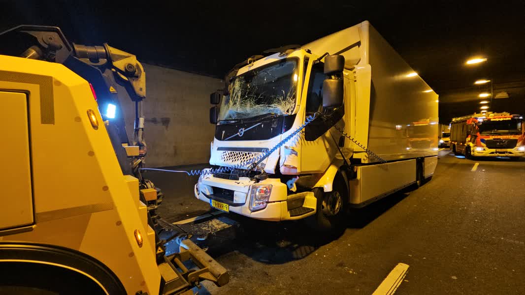In de Drechttunnel zijn dinsdagochtend twee vrachtwagens op elkaar geklapt. Volgens onze 112-correspondent gaat het om een kop-staartbotsing.