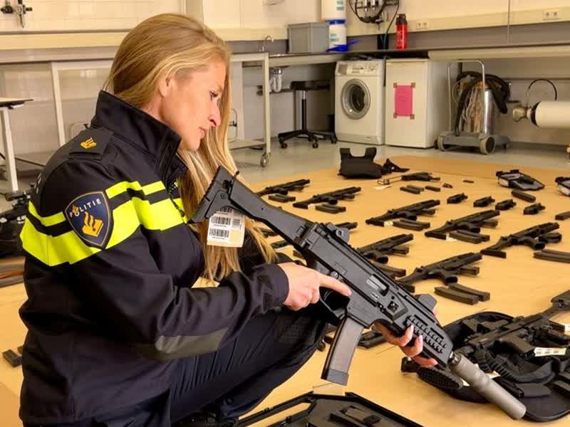In de rechtszaal zitten wel Mikel van den B. (33), Danny B. (38) en Hendricus van der S. (63). De eerste is de enige die nog enigszins aan de gevonden wapens gelinkt kan worden. Maar Van den B. blijkt met justitie te hebben onderhandeld en zogeheten procesafspraken te hebben gemaakt. Daardoor wordt zijn zaak kort en bondig behandeld, zonder veel details. Op een paar wapens is DNA van Van den B. gevonden. Dat betekent volgens justitie: vuurwapenbezit. En los van de spullen in de loods zijn bij Van den B. thuis ook harddrugs gevonden. Het ging om cocaïne en xtc . "Ernstige feiten" vindt de officier. De verdachte, die al een half jaar in voorarrest heeft gezeten, hoort 34 maanden cel tegen zich eisen. Daarna verlaat hij de zaal.