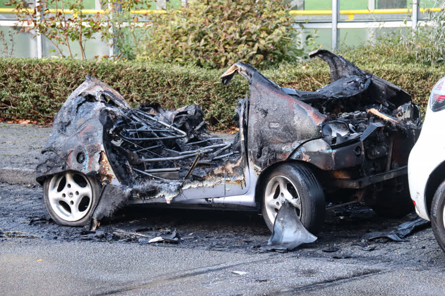 Kleine auto verwoest door brand: ‘Knal en metershoge vlammen’