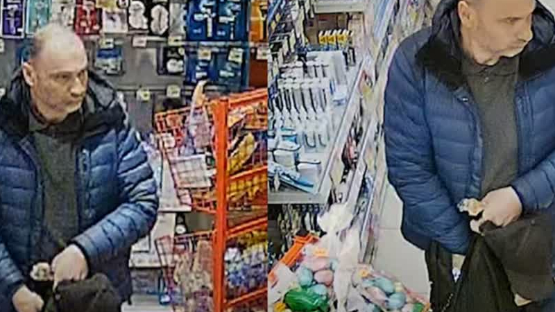 Een diefstal in een Kruidvat-vestiging in Ridderkerk. Klaarblijkelijk heeft de man de artikelen die ...