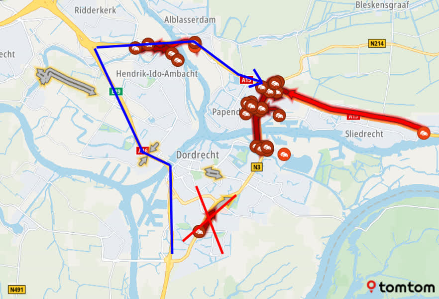 De N3 tussen Dordrecht en Papendrecht is vrijdagochtend dicht geweest bij Dordrecht-Krispijn. Dat kwam door een ongeluk waarbij meerdere voertuigen betrokken waren.