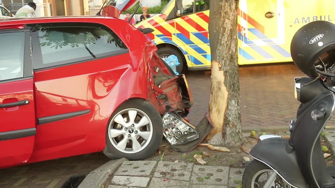 Op de Spuiweg is woensdagavond een meisje van 13 met de auto van haar moeder tegen een boom gebotst.