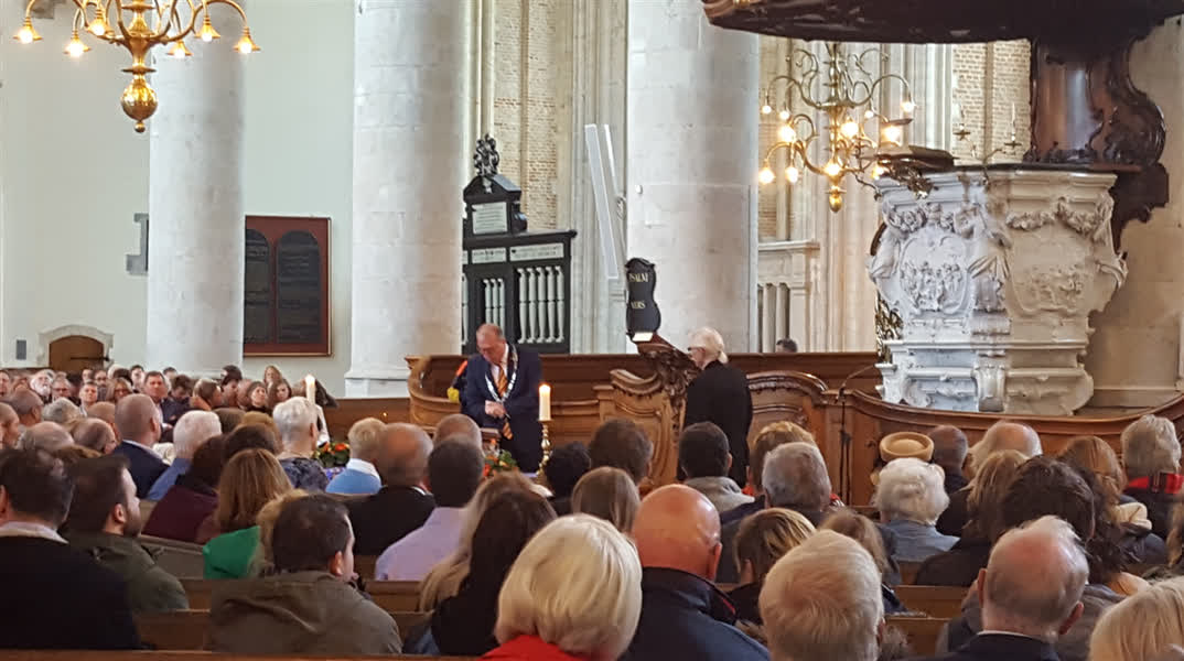 Burgemeester Van der Velden reikte de Koninklijke Onderscheidingen uit. 22 Dordtenaren zijn Lid in de Orde van Oranje-Nassau geworden en drie zijn benoemd tot Ridder in de Orde van Oranje-Nassau. Nadat de burgemeester de Koninklijke Onderscheidingen heeft opgespeld, wordt er een groepsfoto gemaakt in het Hoogkoor van de kerk.