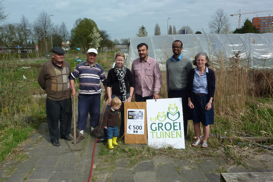 De stichting Groeituinen heeft haar oogst van het voorjaar verkocht op hun zomermarkt. Daarmee heeft ze 500 euro bij elkaar gebracht.