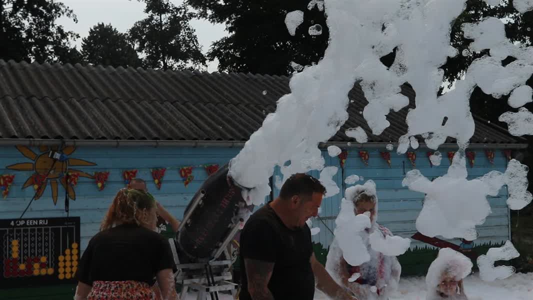 Een 50 jarig jubileum vieren kan op veel manieren, Speeltuin Zeehavenkwartier deed het met een schuimkanon. Woensdag konden kinderen, klein en groot, zich uitleven met het schuim.