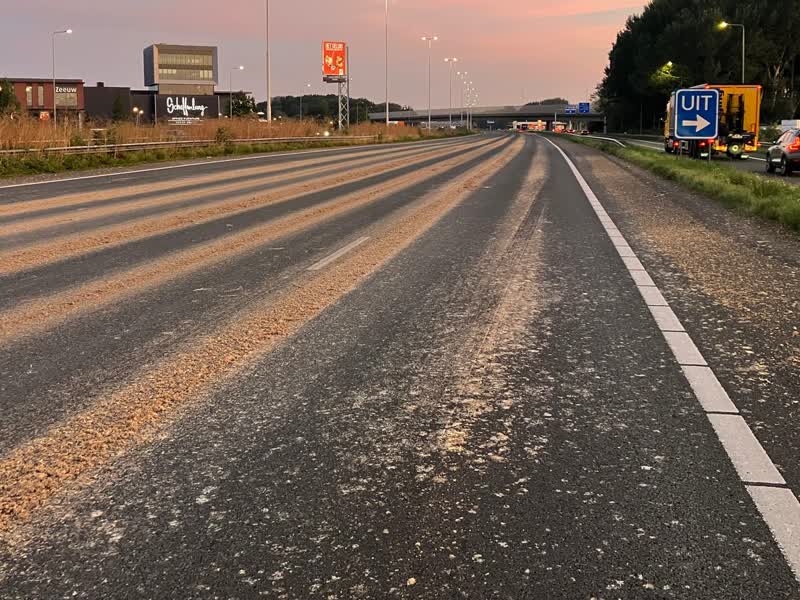 Het incident met de aardappelpulp gebeurde 's ochtends vroeg, rond 06:15 uur, ter hoogte van Hendrik-Ido-Ambacht. Aanvankelijk meldde Rijkswaterstaat dat de weg rond 11:00 uur weer zou worden vrijgegeven.
