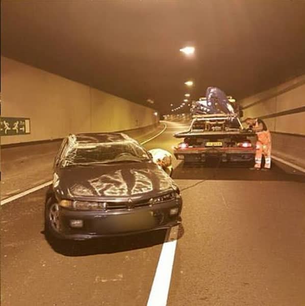 In de Drechttunnel schaarde vannacht een aanhangwagen, waar een auto op werd vervoerd.
