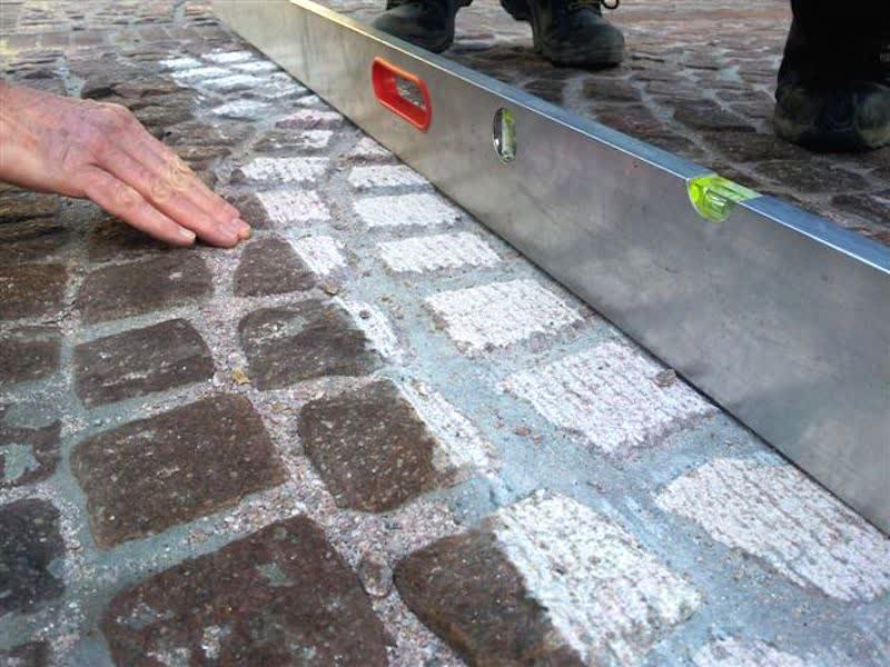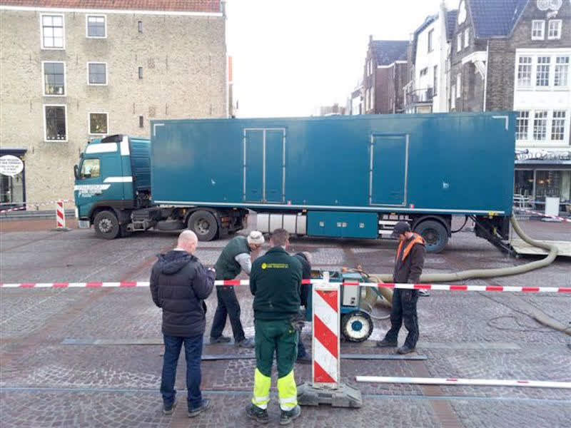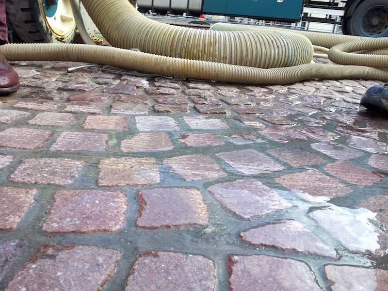 De aannemer die de keien op het plein ongelijk heeft aangebracht, wordt geen incompetentie verweten. De aannemer is flink onder druk gezet om het herbestraten in korte tijd af te ronden. Volgens Beringer was de toegepaste methode innovatief en experimenteel. De gemeente betaalt daarom ook mee aan de herstelkosten. Hoeveel is nog niet duidelijk. In plaats van in zand, zijn de keien aangebracht in cementmortel, terwijl de voegen flexibel moeten blijven. Het geheel moet ook nog eens waterdicht zijn. Vooraf is langdurig gezocht naar een manier om dat voor elkaar te krijgen. Uiteindelijk is gekozen voor een methode die ook in een andere stad is toegepast. Alleen is daar gewerkt met klinkers in plaats van met keien.