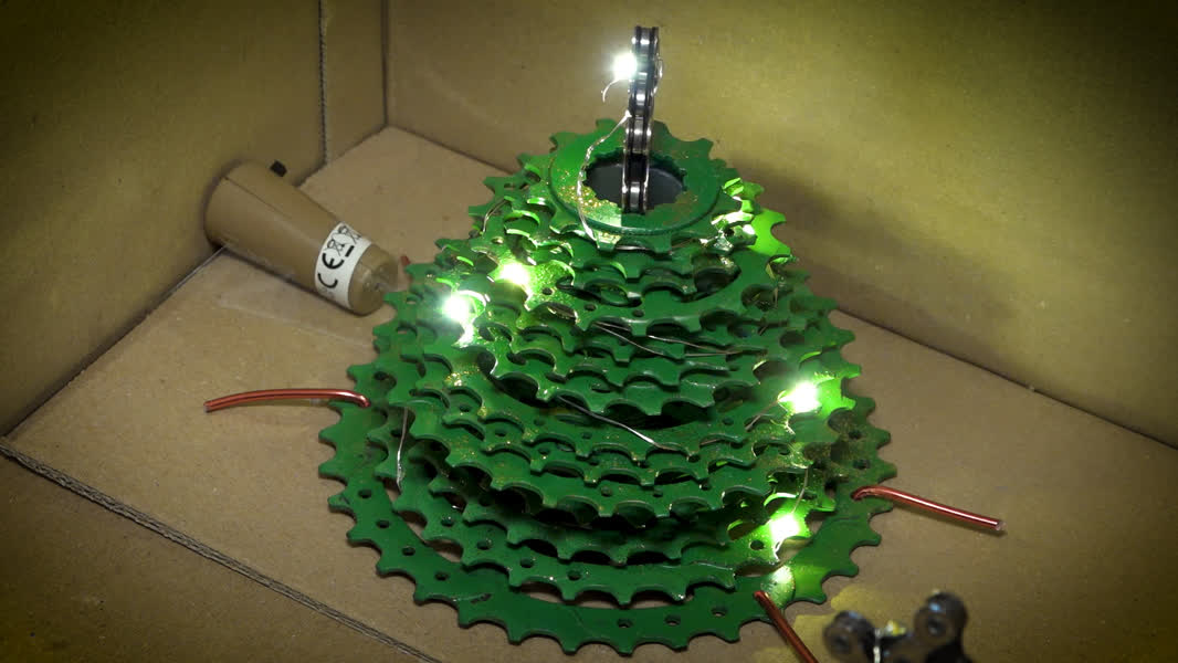 Via haar fietsenmaker kreeg ze naast de kaarsjes ook de kans om iets nieuws te maken, namelijk kunstwerken van tandwielen. De eerste creatie die in haar gedachten opkwam, was een kerstboom. Nadat ze de tandwielen zorgvuldig schoonmaakte, spoot zij ze groen, versierde ze met glitters, plakte de onderdelen aan elkaar en voegde kleine lampjes toe. "Het was een heel proces, maar het resultaat was precies wat ik voor ogen had", vertelt ze nu enthousiast.