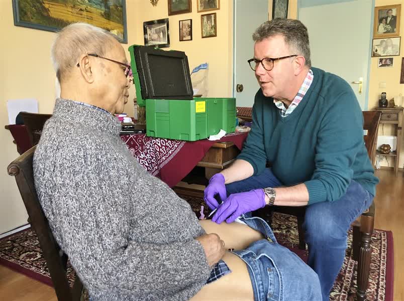 "De eerste kuur vindt daarom altijd plaats in het ziekenhuis. Als de patiënt het middel dan goed verdraagt, kunnen we de toediening verplaatsen naar huis. Alleen transmuraal verpleegkundigen met extra kennis van de oncologische patiënt geven deze injecties."