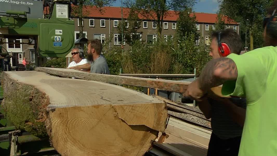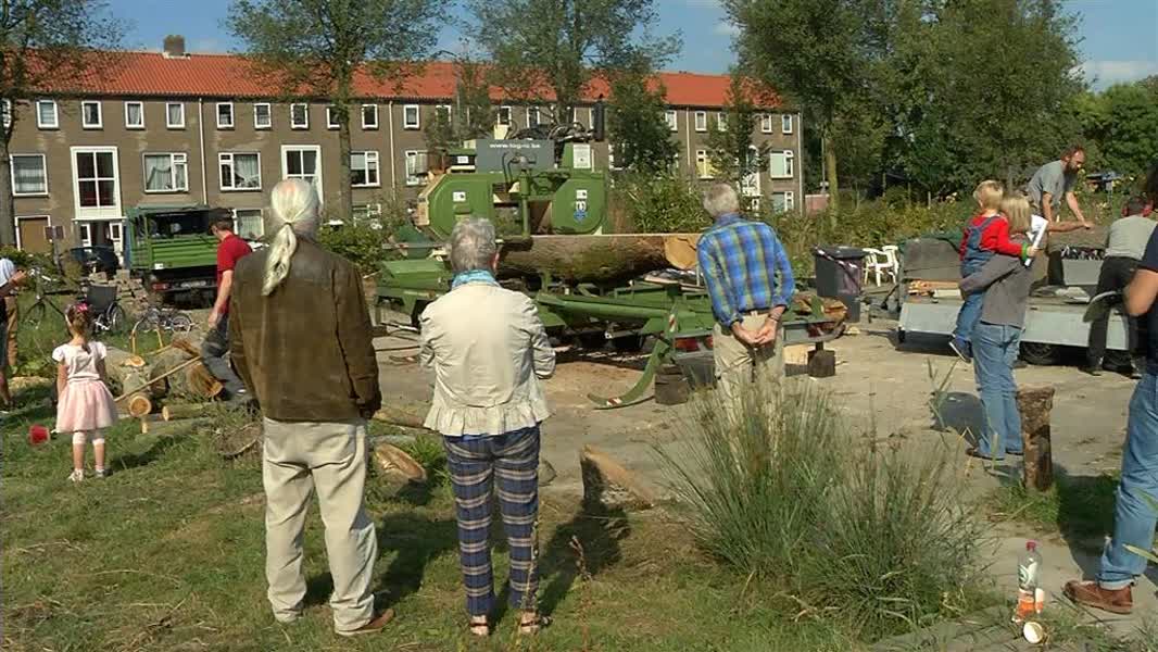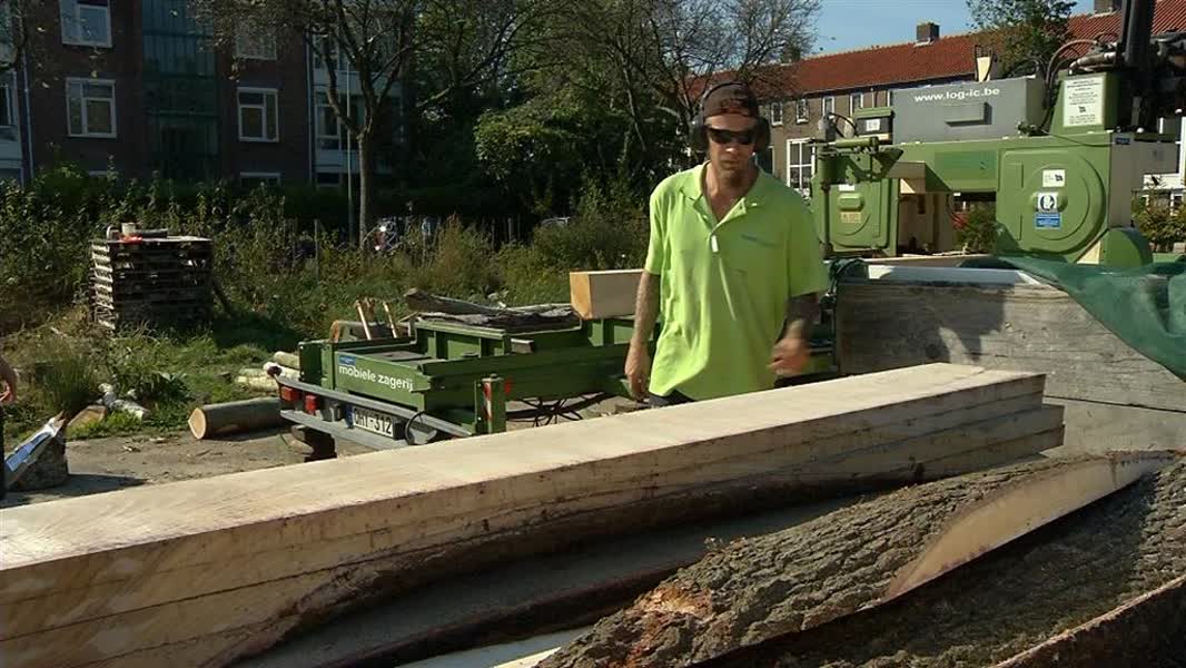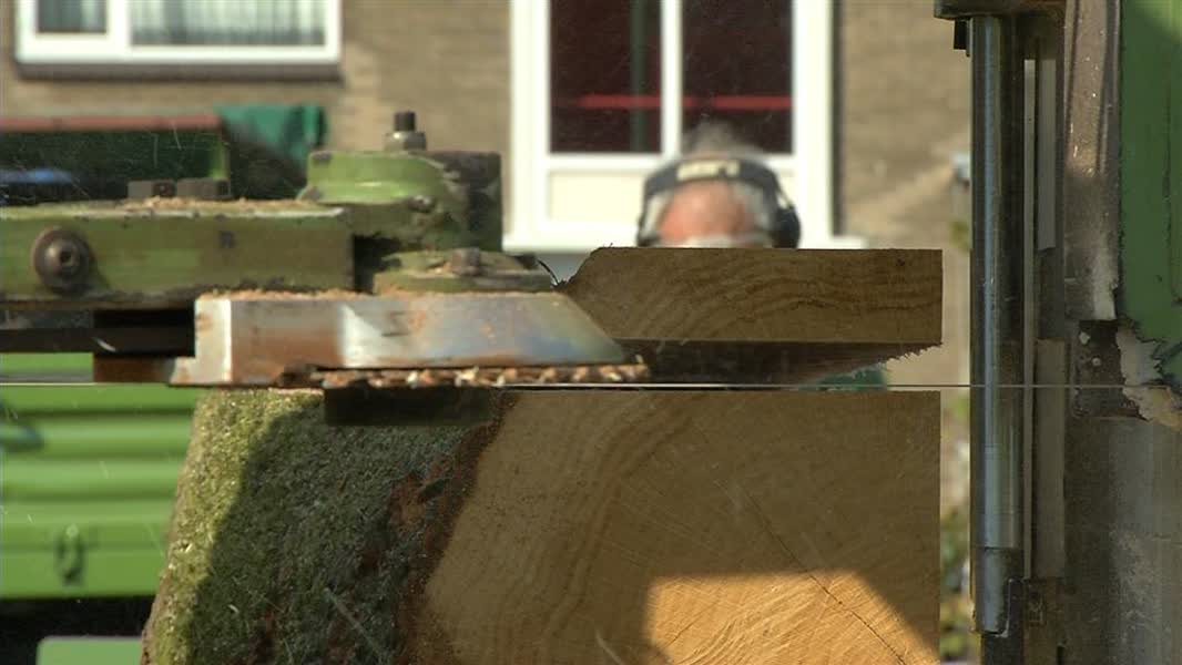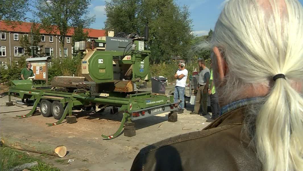 Dit gebeurde op de Patersweg bij de Groeituinen met een zogenaamde mobiele zagerij. Met de gezaagde planken wordt in de hobbywerkplaats een "buurtbank" in elkaar gezet. Deze bank zal uiteindelijk een plaatsje ergens in Krispijn krijgen.