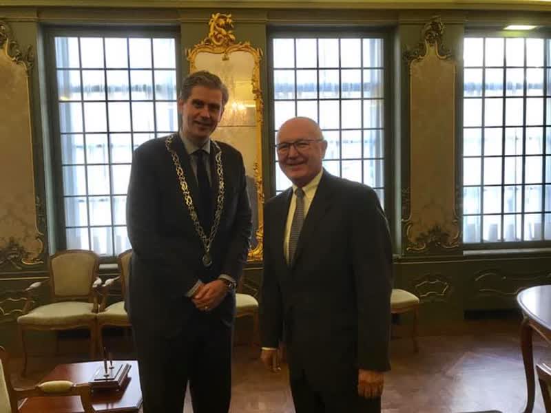 Hoog bezoek donderdag in Dordrecht: de Amerikaanse ambassadeur Pete Hoekstra kwam langs. Hij lunchte met burgemeester Wouter Kolff op het stadhuis. Daarna bracht Hoekstra een bedrijfsbezoek in de stad.