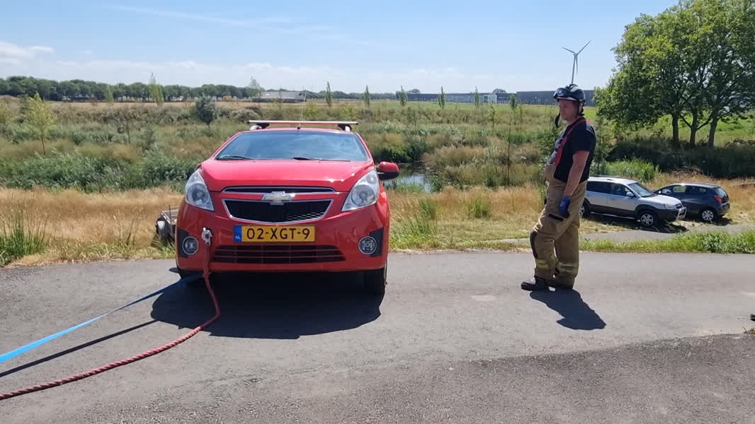 Het voertuig reed in zijn achteruit een stukje van de dijk af. Hierdoor kwam hij klem te staan in het gras en lukte het hem niet om de auto te bevrijden.
