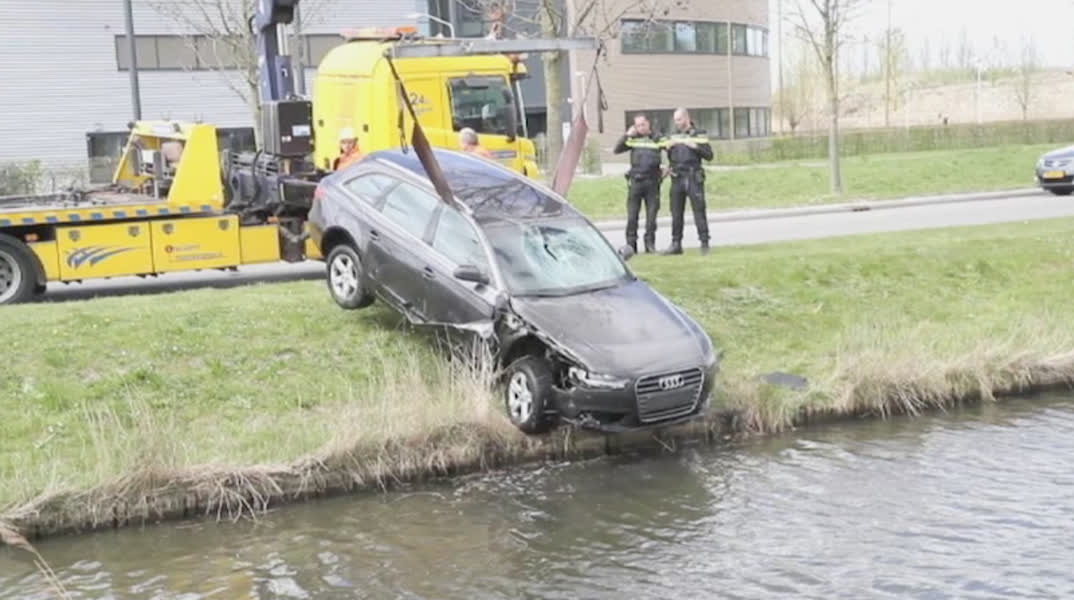 Aan de Aquamarijnring is vanmiddag een bestuurder met zijn auto in het water terechtgekomen.