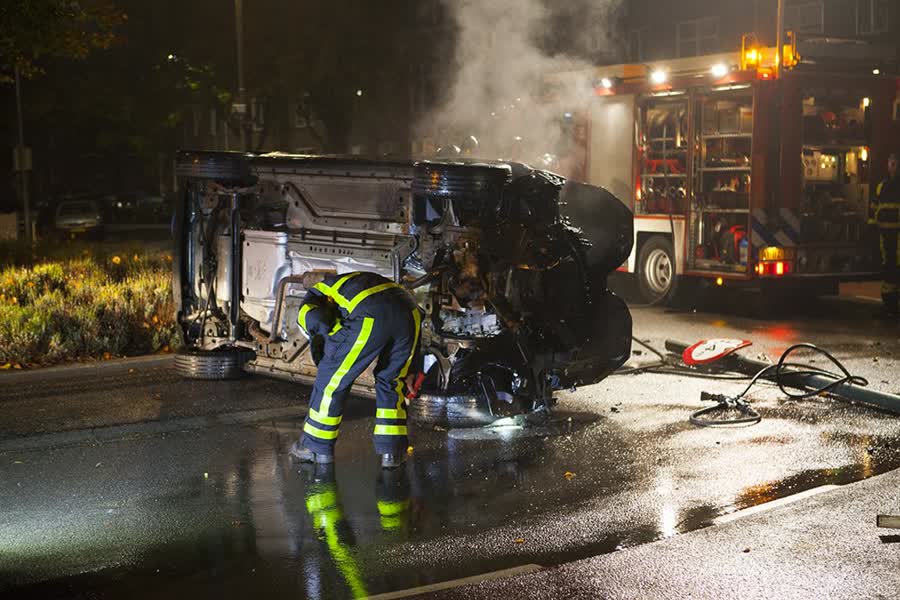 Een auto was op de rotonde over kop geslagen en kwam op zijn zijkant terecht. De hulpdiensten zijn ter plaatsen gekomen om hulp te verlenen. Het was een grote ravage op de plaats van het ongeval. De politie doet onderzoek naar de oorzaak.