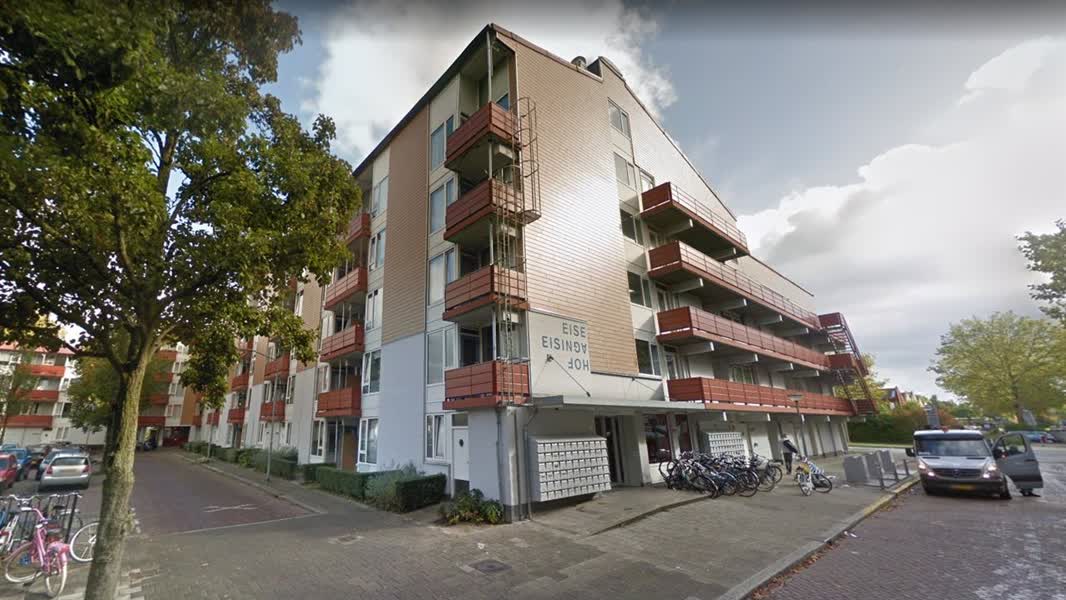 Een auto is vrijdagochtend vroeg tegen een gevel op het Eisingahof in Sterrenburg geknald. Zowel de auto als de gevel hebben flinke schade.