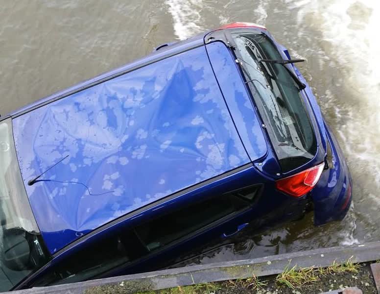 Auto rijdt zelf water in