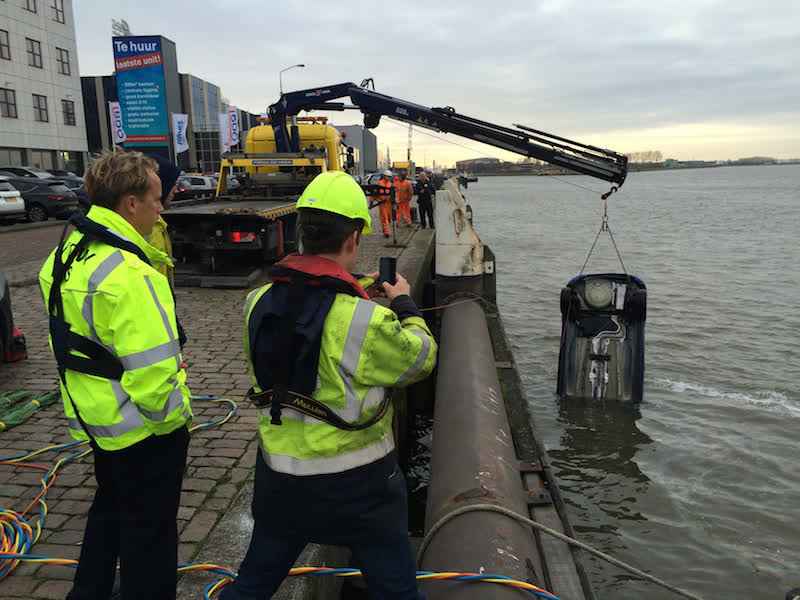 Een auto aan de Handelskade is zelfstandig de Oude Maas ingereden.