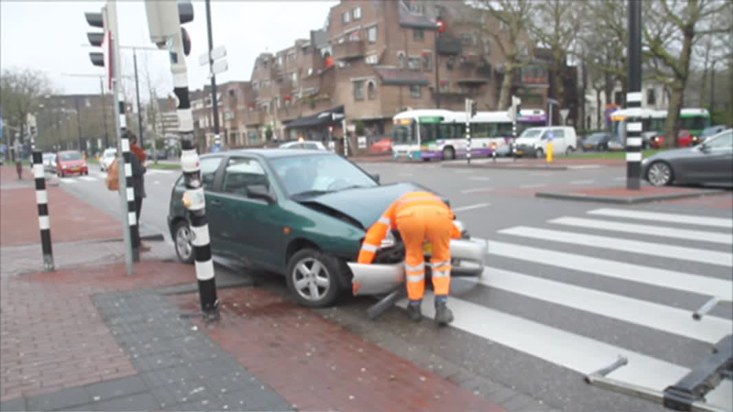 De man is met een zere nek naar het ziekenhuis gebracht. De auto raakte fors beschadigd en het verkeerslicht staat scheef. Het verkeer had korte tijd last van het ongeval, maar de weg voor het station hoefde niet afgesloten te worden.