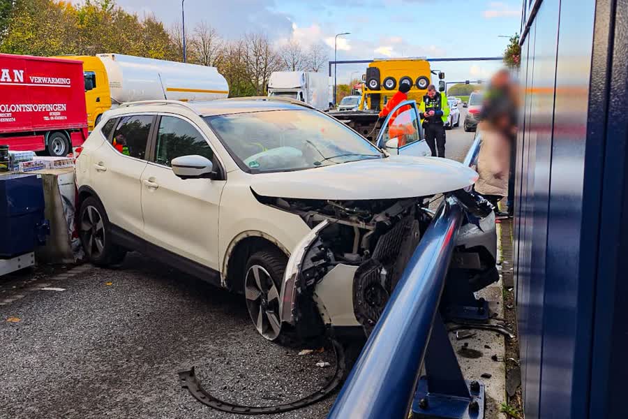 Automobilist knalt op vangrail tolpoortjes, politie doet opmerkelijke vondst