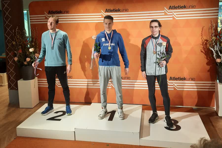 Later op de dag behaalde ook de 37-jarige Bas Bodewes succes op de cross. Afgelopen jaar veroverde hij al meerdere podiumplaatsen, maar zijn eerste medaille op het NK werd zaterdag een feit. Zijn 9.03 op de 3000 meter (een gemiddelde van 20 kilometer per uur!) leverde ook hem ook derde plaats op. Volgens Bodewes zorgde de ‘droge lucht’ in de indoorhal ervoor dat de wedstrijd extra zwaar was.