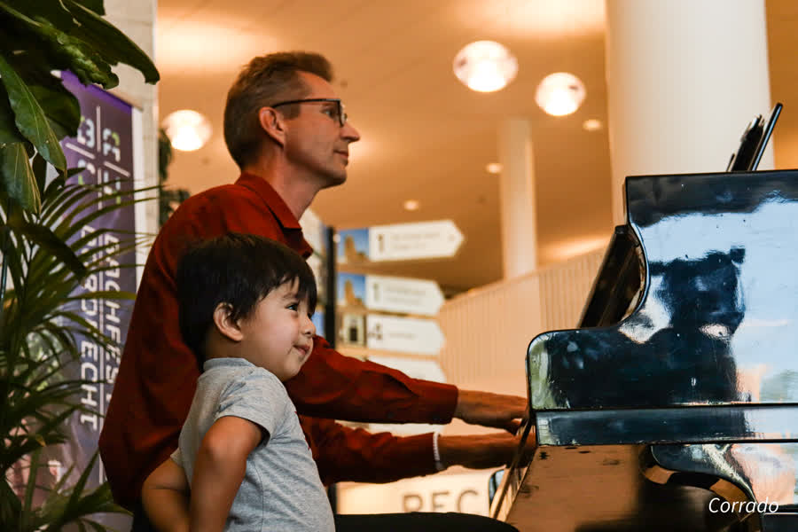Na vier jaar is het Bachfestival weer terug, zo ook in het Albert Schweitzer ziekenhuis. Daar speelde de Dordtse pianist Hielko Ubels maandag en dinsdag muziekstukken van Bach, Chopin en Gluck. Het publiek dat even stopte om te luisteren, was niet bepaald jong te noemen. Behalve de 2-jarige peuter Rafaël, die bijna bij Ubels op schoot kroop.