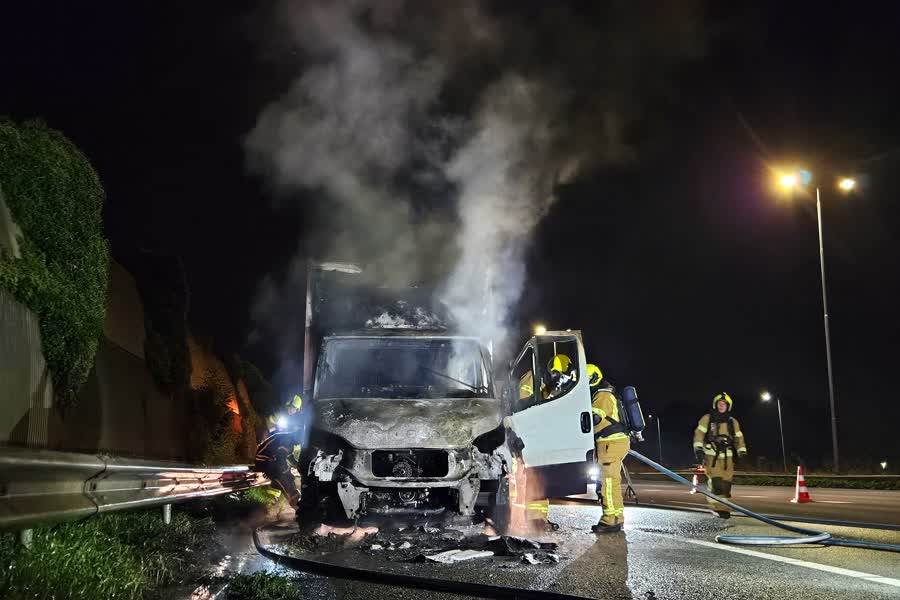 Een bakwagen is woensdagavond laat in vlammen opgegaan op de A16 bij Hendrik-Ido-Ambacht. De bestuurder kon het voertuig nog op tijd stilzetten op de vluchtstrook. Hij is voor zover bekend niet gewond geraakt.