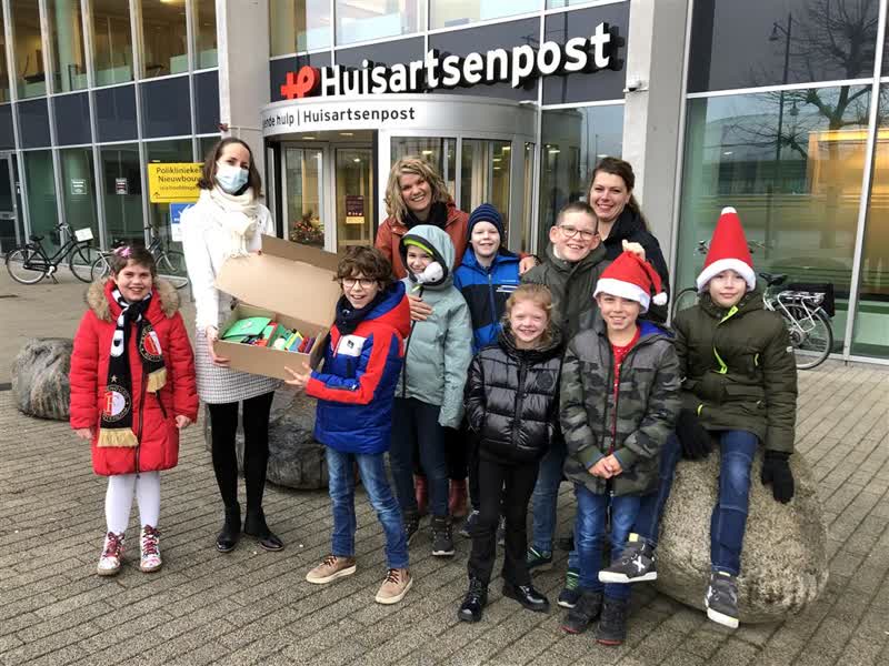 Basisschool knutselt kerstkaartjes voor patiënten Albert Schweitzer ziekenhuis