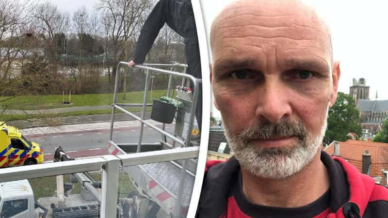 Een heldenactie voor een glazenwasser uit Dordrecht. De 54-jarige Peter Tiemans was rustig aan het w...