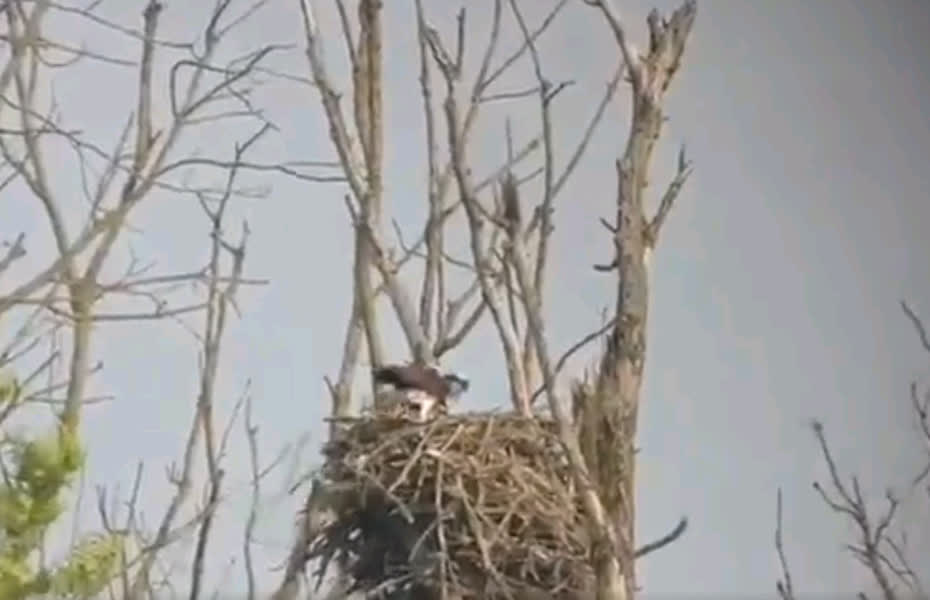 Ook het tweede paar visarenden in de Biesbosch heeft jongen. In een filmpje op Twitter is te zien hoe een van de ouders een jong voert. Het nest van het paar zit in een hoogspanningsmast.