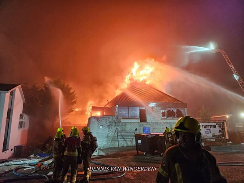 "De Theetuin heeft een mooi puntdak aan de voorkant, maar daar kijk je nu helemaal doorheen", vertelt een Rijnmond-verslaggever die woensdagochtend ter plekke is. "De letters 'De Theetuin' zijn wel nog intact, die zitten er nog op. Maar vooral ook aan de achterkant van het pand heeft de brand flink gewoed en daar is nog maar weinig van over."