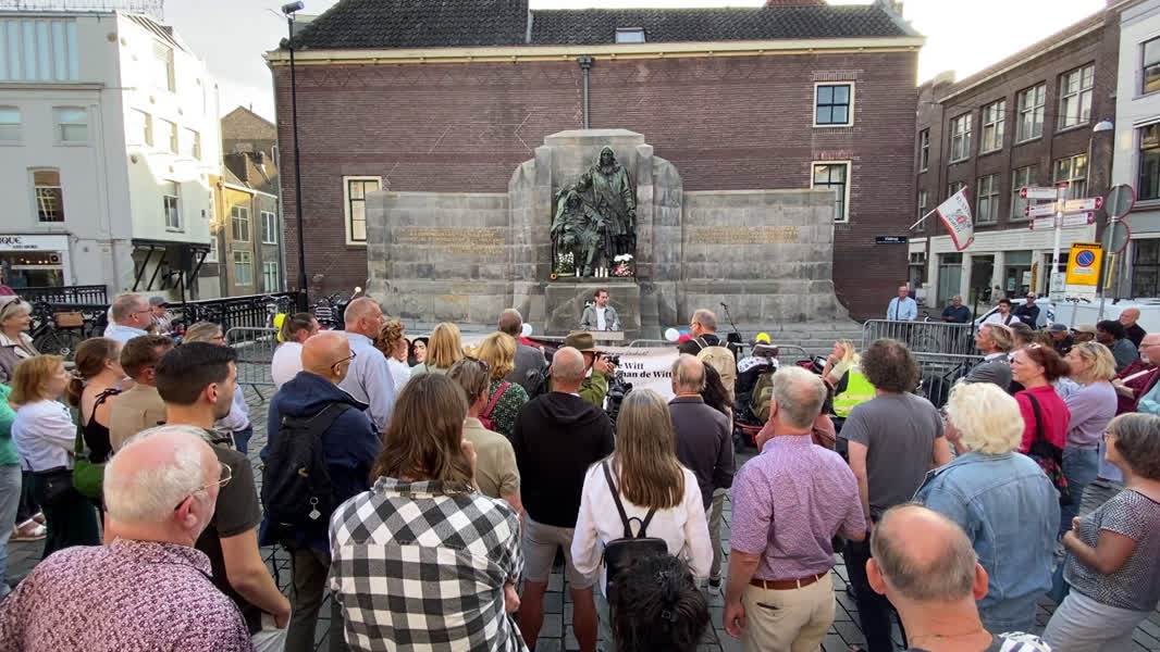 Dat sentiment klinkt ook terug in de toespraken die bij de herdenking worden gehouden. Historicus Remy Balistreri neemt het publiek terug naar het rampjaar van 1672. “Het volk was redeloos, de regering radeloos en het land reddeloos. Het was een tijd van wantrouwen en paniek.” Volgens Balistreri is stilstaan bij die tijd belangrijker dan ooit: “Die gevoelens en politieke onrust, waar herkennen we dat van?”