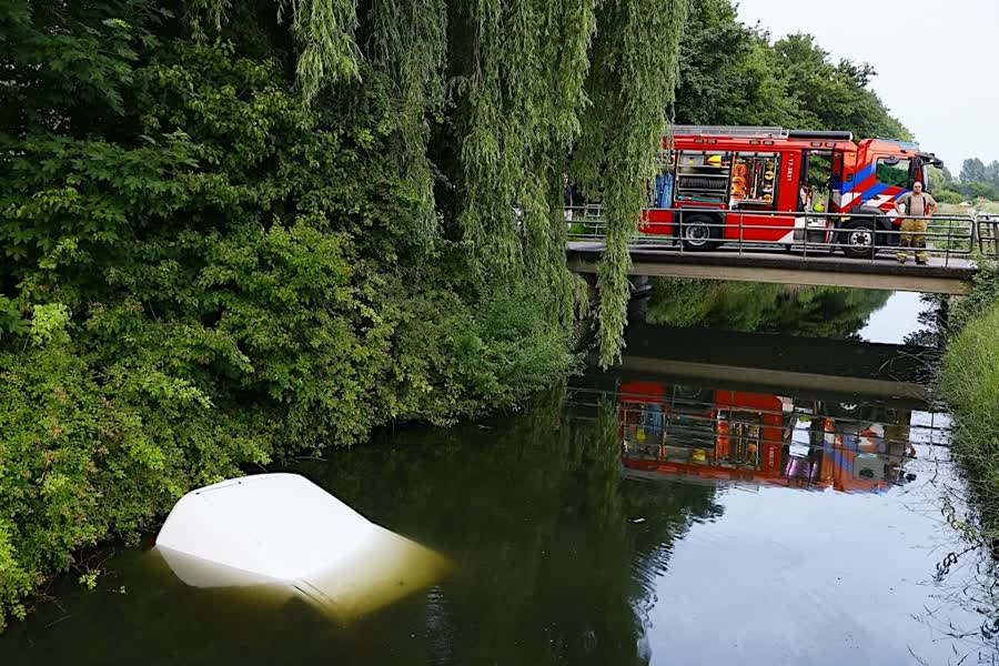 Een bestelbus en een personenauto zijn maandagavond op elkaar gebotst op het Goudenregenplantsoen in Ridderkerk. De bestelbus belandde na de klap in de sloot en lag grotendeels onder water.