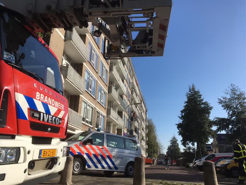 De brandweer heeft een apparaat op het dak gezet, waarmee in muren kan worden geblust. De brand zit in een spouwmuur tussen twee woningen op de bovenste verdieping van een flat. Een aantal bewoners is hun huis uit. Voorlopig zijn ze buiten, maar er wordt onderdak geregeld. Twee katten zijn uit woningen gehaald.