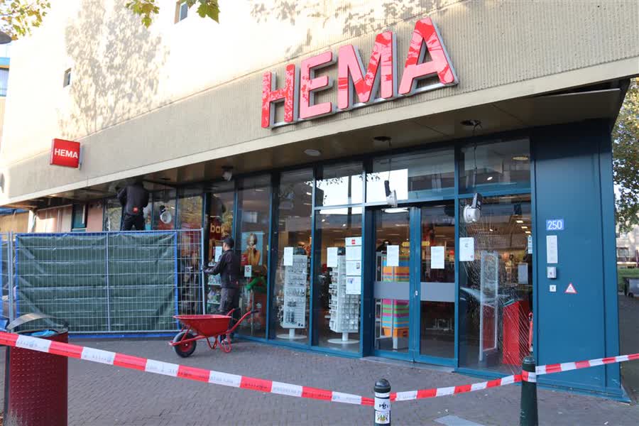 De plofkraak verwoestte de geldautomaat volledig en veroorzaakte veel schade aan het Hema-filiaal op winkelcentrum Bieshof. Ook een geparkeerde auto aan de overkant van de straat werd getroffen. “Er zit een flinke barst in de auto van mijn zoon”, vertelt bewoner Ruben Blenman. “En van één van de spiegels is er ook weinig meer over.”